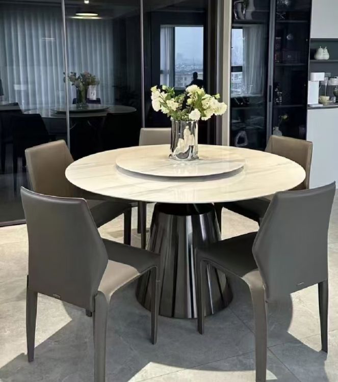 TQ008天然奢石圆桌(不含转盘)/爵士白