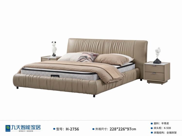软床 > 真皮软床 > 现代 > 九天家私 > H-2756软床/A类/全铺床架/180*200