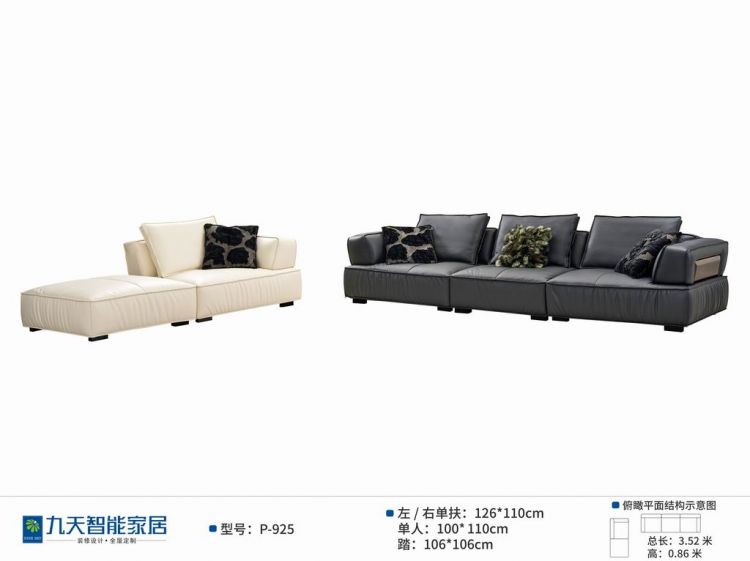 P-925半皮黑色沙发/1+1+1/A类/不分方向/2包