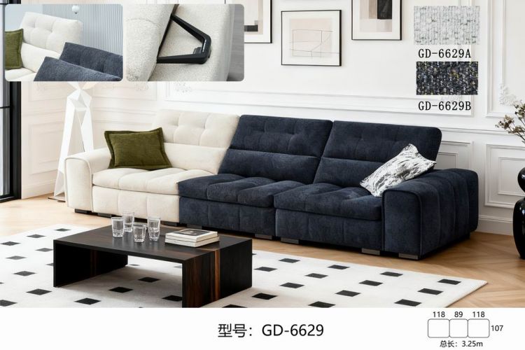 GD-6629 绒布沙发/右扶单+直单+左扶单/