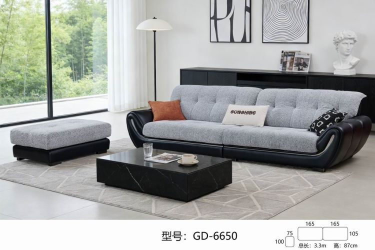 GD-6650 绒布生态皮沙发/踏